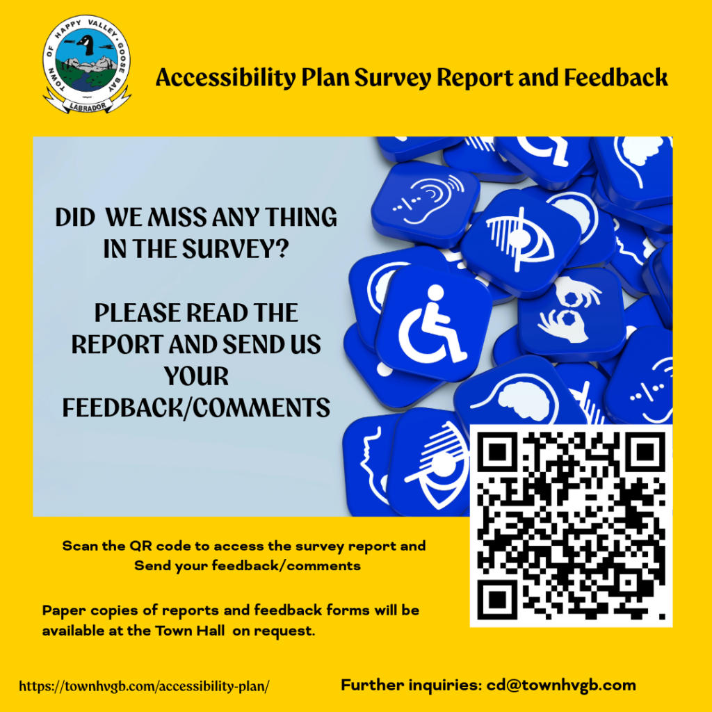 The Town just completed an Accessibility Plan Survey. The Analysis of this survey is presented in a report, which is now available online on the Accessibility Plan Page on the Town’s website.